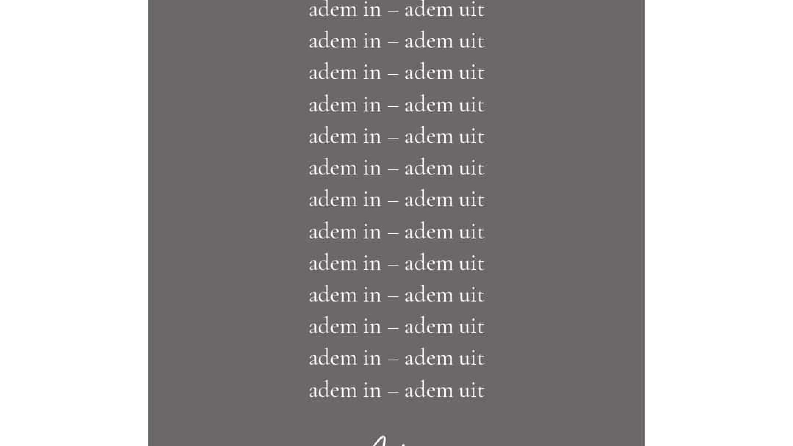 Vanmiddag zat ik naast haar en keek. Hoe haar adem zachtjes in en uit haar buik vloeide. Ik luisterde hoe ze toonde, keek hoe haar lichaam bewoog en langzaam rustig en zacht werd. Mijn ene hand lag op haar buik, mijn andere op haar hart. Dat laatste stond niet in het ademboek, maar daar hoorde mijn hand wel. Dat voelde ik, dat wist mijn hand.